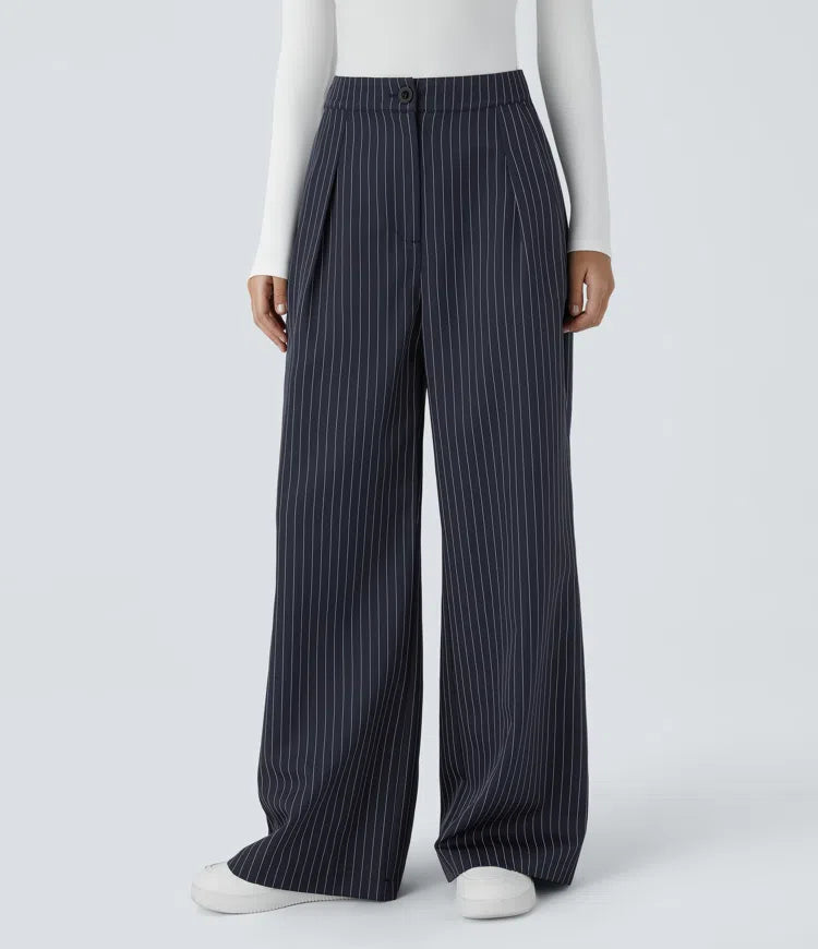 HIGH WAISTED ZIPPER POCKET WIDE LEG STRIPED WORK PANTS
